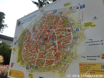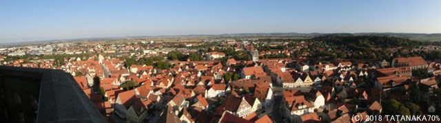 さらに南下し、午後5時を過ぎたあたりでネルトリンゲンに到着。ここは『進撃の巨人』のモデルになったと言われている街で、街全体が高い塀で丸く囲まれている。教会の塔から見下ろすとよくわかるのだそうだ。