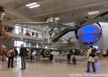そこには第二次世界大戦中に開発された2機の戦闘機が展示されていた。一つは、世界初のジェット戦闘機、メッサーシュミットMe262。スマートな機体が美しく、これが全力で空を駆けている姿を想像すると胸が熱くなる。もう一つは、これもまた世界初、というか飛行機が発明されてから現代に至るまでの歴史の中で数えるほどしか例がないロケットエンジンを搭載した戦闘機Me163コメート。ややずんぐりとした独特な姿は、今見ても斬新だ。当時の一般的な戦闘機より200km/hほど速く飛ぶので、あまりにも速度差がありすぎてかえって敵機を狙いづらかった、という話も聞く。写真でしか見たことがなく、いつか実物を見てみたいと焦がれていたこの2機に、今日やっと会うことができたのだった。なんと美しくカッコイイのだろう、と様々な角度から写真を撮る。戦争で使う兵器を美しいとかカッコイイとか嫌ねぇヒソヒソ…と眉をひそめる方もいるだろうけれど、何の予備知識も持たずに例えばずんぐりしたMe163を女性に見せたらわりと高い確率でキャーカワイーとはしゃぎ、富豪に見せたら2人に1人くらいはキミこれはなかなかいいじゃないか一つくれたまえと懐から札束を出すのではないだろうか。どんな目的で作られようと、美しいものは美しく、カッコイイものはカッコイイのだ。実機の迫力、質感をしっかりと味わってから、博物館を後にした。