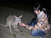 ワニの後には小型のカンガルー、ワラビーが控えていた。ワラビーは放し飼いになっており、あちこちで勝手に歩いたり寝そべったりしているので自由に触れることができる。最初は後頭部を逆撫でして楽しんでいたが、やがてそれにも飽きるとすることがなくなってしまった。少し手持ちぶさたにワラビーの写真などを撮っていると、突然2頭のワラビーがケンカをはじめた。それだけならどうということもないのだが、もう1頭がまるでケンカを仲裁するように2頭の間に割って入ろうとしていた。小さな手を前に突き出している姿が、まあまあお二人とも・・・と言っているようで素晴らしい仲裁っぷりである。