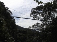 最終日 宮崎〜熊本ゆうべから覚悟はしていたけれど、どうにも複雑な気分で、僕は目を覚ました。やはり最後の朝というのはすっきりと目覚めることはできない。もっと旅を続けたいし、早く家に帰りたい。自分の気持ちがどこかを勝手にふらついているような、とらえどころのない不安感に、僕はいつも惑わされてしまう。 かと言って、いつまでもぐずぐずとベッドに埋もれていることもできない。帰りの航空券はすでに手元にあるし、明日からは仕事だってある。僕は、思い切って起きあがった。 荷物の整理は、ゆうべのうちに済ませてある。最後の朝はぐずぐずするに決まっているから、荷物の整理は最後の夜の儀式になっている。すべての荷物をベッドに並べ、またきれいに詰め直す。だから、最後の朝は身支度を整えるだけで出発できる。 だから、今朝はいつもより早く、8時半に走り出した。 1時間ほどで、宮崎市近郊の、綾という町に着いた。ここには、歩道吊り橋としては高さ世界一という吊り橋がある。いちばん高いところで142m、長さ250mとなっているからそれはもう高い。高いところは少し苦手だけれど、せっかくなので渡ってみることにした。 吊り橋は、とてもしっかりした作りで、ほとんど揺れなかった。足下も、橋の真んなか付近の数カ所の格子を除いて金属板でできており、下をのぞき見ることができない。少し物足りなさを感じながら、反対岸まで渡った。 反対岸には、なにがあるわけでもない。そこからは、遊歩道が始まっている。照葉樹林遊歩道の出発点として、吊り橋があるだけなのだった。引き返すか、そのまま遊歩道を歩くか、僕はさんざん迷った。しかし、遊歩道の先にはもうひとつ小さな吊り橋がある。その吊り橋から、今渡った橋を見上げる写真が撮りたかったので、僕は遊歩道を行くことにした。 夏休み期間とはいえ、平日の午前9時すぎ。他に観光客は誰もおらず、僕は遊歩道をひとりきりで歩き続けた。ぬかるんだ道を上り下りする、かなりきつい遊歩道だった。橋を渡っている間、日差しはとても強かったが、森の中に入ると陽は遮られ、心地よい程度の木漏れ日が降り注いでいた。そのかわり、湿度はさらにあがったようだ。不快指数計があったら、きっと針は振り切れてしまうだろう。 しばらくすると、小さな滝が現れた。滝壺からは沢が始まっており、歩道と沢は何度か交差しながら下っていった。うるさいほどの蝉の声は、しばらくは沢の流れにかき消されていたが、やがて沢が落ち着くと、またじいじいと辺りに響いた。この旅で何度か沢沿いを歩いたが、せせらぎと蝉の声はとても上手に共存できている。両方がうるさかったらそれはもう耳障りだろうが、音の性質が似ているせいだろうか、沢を歩くとある瞬間見事に入れ替わり、どちらか片方だけが聞こえるのだった。