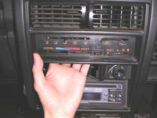 灰皿のところから手を突っ込み、エアコンパネルを裏から押し出します。