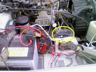 エンジンルームから車内のセンサまで、透明なチューブを引き込むのですね。でも、面倒だったのでこんなふうにしちゃいました。