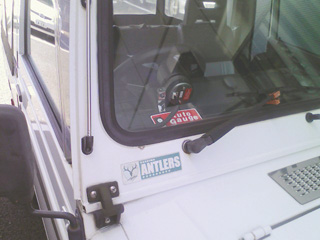 車外から見ると、こんな感じ。オマケのステッカーで金具を隠しました。