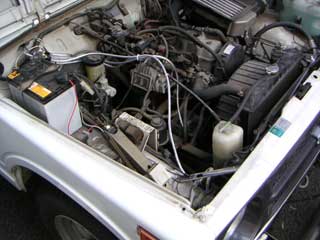 最初にバッテリーのマイナス端子からコードを外し、感電やショートしないようにします。それからアース線を張ってください。これ、鉄則ですよ。