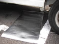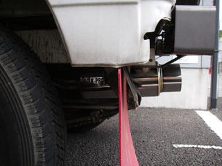 純正マフラーを外します。 車高を5cm上げてあるので、ジャッキ不要でした。キャンプ用の銀マットを敷けば作業できます。 ※車の下に潜り、上を向いて作業するので、錆びた鉄片、乾いた土、CRC-556の滴などが顔に落ちてきます。ゴーグルとマスクを忘れずに。 新車購入から10年以上経ち、サビサビになってますが思ったほど酷くない。ナットもしっかりしています。 古い車のマフラー交換は、ここが最初にして最大の難関。がんばりましょう。 前の晩にCRC-556をたっぷり吹きつけ、少しでも外しやすくしておきます。外す当日もCRCを吹きます。 ボルトをゆるめるときは、必ずメガネレンチを使ってください。普通のスパナではあっというまにナメてしまいます。 ボルトが12mm、ナットが14mm。かなり固いので、なるべく長いレンチがいいでしょう。このボルトは溶接されているわけじゃありません。ふんぬっと頑張れば必ず外れる、はず。少なくともシフトノブ外すよりは簡単でした。 ※どうしても外れないとか、こりゃナメるぞ、というときは、無理をせずプロにお願いしましょう。 外したマフラー。ご覧の通りポッキリです。 どうしようもないので捨てるのですが、各自治体の指定に従って廃棄してください。 必需品・ゴーグル。100円ショップで購入。 銀マットを敷いて作業。100円ショップで購入。
