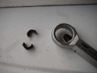 ラスペネを吹き付けてナットが回ってくれればいいんですが、どうしても回らない場合は無理しないで割った方が早いです。僕の場合は2週間くらいなんとか回そうと頑張ったんですが、その労力と時間を考えたらナットブレーカー(ナットスプリッタ)を買ったほうが安上がり。