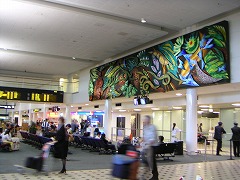 第2話 1日目@・鈍色の空JL761便が予定通り8時間半のフライトを終えようとするころ、機内に機長のアナウンスが流れた。 「えぇ、ハァ…、本機まもなくブリスベン空港に到着いたします。ハァ…、情報に寄りますとぉ、ハァ…、現地の天候は雨、ハァ…、気温は摂氏17度ということです。ハァ…」 なんだか息も絶え絶えタメ息混じりで大変不安を誘うアナウンスであった。なんとか着陸まではがんばって欲しいものだとタメ息機長を応援していたが、いざ着陸してみるとこれが実に柔らかく静かで、木の葉をそっと置いたような着陸だった。やるじゃないかタメ息機長、やんややんやと僕は喝采した。入国審査を終えて空港の外に出ると、着陸前の機内アナウンスでは雨ということだったが、地面が濡れているだけで雨は降ってはいなかった。空は曇っており、気温はこの時期の東京と同じくらいで、少し肌寒い。 ブリスベンからゴールドコーストまでは70kmほど離れているが、バスで移動する。バスから見た風景はとても広々と落ち着いていた。僕はしばらく車窓の風景を楽しんでいたが、飛行機の中で眠れなかったので、いつのまにか眠ってしまっていた。 あとから聞いた話だが、エフはあまり眠れなかったらしい。後ろの席に座っている人が背もたれの腰から肩の部分にかけてぐいぐいと押してきて、マッサージチェアに座っている気分だったそうだ。エフはよくこういう目に遭う。映画を見ていてもシートを蹴られることが多いし、以前、電車の中で隣に立っている人が吊革から手を滑らせ、エフの頭をぽかりと叩いたこともあった。なんだかいろいろと災難を受けやすい人で、たぶん僕の避雷針になってくれているのだろうから気の毒だけれどとてもありがたい。 ところで、オーストラリアは広い広いとよく言われるけれど、具体的に日本と比べると面積が22倍、人口が約7分の1だから、人口密度は単純に計算すると150分の1くらい。広く感じて当然だ。また、ワインとビールの消費量が多く、特にメジャーブランドのVBとクイーンズランド州の地ビールXXXX(フォー・エックス)が有名だ。僕はXXXXのさらりするりとした飲み口が大好きで、今回もXXXXを飲むのが楽しみだった。もちろん日本でもXXXXは飲めるが、やはり地ビールは地元で飲むのが一番旨い。ちなみにXXXXにはXXXXとXXXX・BITTERがあるが、XXXX・BITTERはあまり好みじゃない。やっぱり、スッキリサワヤカ系のXXXXに僕は軍配を揚げたい。どうでもいいがXXXX、XXXXと何度も書き並べると伏せ字のようで少しイヤラシくなってしまうなぁ。 バスは2時間ほど走り、今回宿泊するコンコルドホテルに到着した。 チェックインは14時からだそうなので、夜まではレンタカーを借りに行ったり街をぶらついて過ごすことにしていた。とりあえずホテルのトイレに入ったあと、狭いロビーでエフを待っていると、ロビーの端にツアーのパンフレットがいくつか並んでいるのを見つけた。そのなかに、今回行こうと思っていたカランビン・ワイルドライフ・サンクチュアリのナイトツアーのものもあった。英語版だったが、それほど難しいことは書かれていない。「オーストラリアの動物の70%は夜行性だから、動物は夜見るべきである」とか、「すばらしくて忘れがたい経験をあなたは得られるであろう」とか、そんな誘い文句が書き連ねてあり、最後に「予約は14時までに行い、代金は14時半までに支払え」と書いてあったが、どこで予約し、どこで払えばいいのかわからない。直接電話するしかないかな、と思ったが、念のためホテルのフロントのおばちゃんに予約してもらえるかどうか聞いてみることにした。 おばちゃんは快く受け付けてくれて、カランビン・ワイルドライフ・サンクチュアリに電話をした。しかし、料金が1人あたり$61だという。確かガイドブックには$49と書いてあったので、ひょっとしてと思って聞いてみた。 「あのう、それってピックアップも込みなの?」 「ええそうよ」 「いやあの、レンタカーで行くので、ピックアップはいらないんだけど」 「あらまぁあらまぁ」 おばちゃんはイヤな顔ひとつせずにもう一度電話し、ピックアップなしに変更してくれた。大変親切な方である。結局、料金は$49となり、予定通りだ。これで、19時までに現地のメインゲートに行けばいい。残念ながら日本語のガイドはいないそうだが、まあ子供も来るんだしそれほど難しい言葉は使わないだろう。 夜の予定が決まったので、さっそく車を借りに行くことにした。ホテルの近くにAVIS、少し離れたところにバジェットがあることは、あらかじめ調べておいた。他にもローカルな安いところはあるが、万一のときのことを考えるとやはり大手の方が安心できる。特に今回は山の奥にも入って行くので、途中でトラブルがあっては困るのだ。 AVISに行き、予約してないけどとにかく安いのを貸してくれと言うと、安いのは無いという。いま用意できる車で一番安いのは1日あたり$77、さらに保険