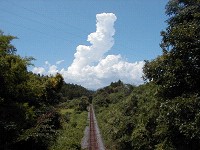 最終日 宮崎〜熊本ゆうべから覚悟はしていたけれど、どうにも複雑な気分で、僕は目を覚ました。やはり最後の朝というのはすっきりと目覚めることはできない。もっと旅を続けたいし、早く家に帰りたい。自分の気持ちがどこかを勝手にふらついているような、とらえどころのない不安感に、僕はいつも惑わされてしまう。 かと言って、いつまでもぐずぐずとベッドに埋もれていることもできない。帰りの航空券はすでに手元にあるし、明日からは仕事だってある。僕は、思い切って起きあがった。 荷物の整理は、ゆうべのうちに済ませてある。最後の朝はぐずぐずするに決まっているから、荷物の整理は最後の夜の儀式になっている。すべての荷物をベッドに並べ、またきれいに詰め直す。だから、最後の朝は身支度を整えるだけで出発できる。 だから、今朝はいつもより早く、8時半に走り出した。 1時間ほどで、宮崎市近郊の、綾という町に着いた。ここには、歩道吊り橋としては高さ世界一という吊り橋がある。いちばん高いところで142m、長さ250mとなっているからそれはもう高い。高いところは少し苦手だけれど、せっかくなので渡ってみることにした。 吊り橋は、とてもしっかりした作りで、ほとんど揺れなかった。足下も、橋の真んなか付近の数カ所の格子を除いて金属板でできており、下をのぞき見ることができない。少し物足りなさを感じながら、反対岸まで渡った。 反対岸には、なにがあるわけでもない。そこからは、遊歩道が始まっている。照葉樹林遊歩道の出発点として、吊り橋があるだけなのだった。引き返すか、そのまま遊歩道を歩くか、僕はさんざん迷った。しかし、遊歩道の先にはもうひとつ小さな吊り橋がある。その吊り橋から、今渡った橋を見上げる写真が撮りたかったので、僕は遊歩道を行くことにした。 夏休み期間とはいえ、平日の午前9時すぎ。他に観光客は誰もおらず、僕は遊歩道をひとりきりで歩き続けた。ぬかるんだ道を上り下りする、かなりきつい遊歩道だった。橋を渡っている間、日差しはとても強かったが、森の中に入ると陽は遮られ、心地よい程度の木漏れ日が降り注いでいた。そのかわり、湿度はさらにあがったようだ。不快指数計があったら、きっと針は振り切れてしまうだろう。 しばらくすると、小さな滝が現れた。滝壺からは沢が始まっており、歩道と沢は何度か交差しながら下っていった。うるさいほどの蝉の声は、しばらくは沢の流れにかき消されていたが、やがて沢が落ち着くと、またじいじいと辺りに響いた。この旅で何度か沢沿いを歩いたが、せせらぎと蝉の声はとても上手に共存できている。両方がうるさかったらそれはもう耳障りだろうが、音の性質が似ているせいだろうか、沢を歩くとある瞬間見事に入れ替わり、どちらか片方だけが聞こえるのだった。